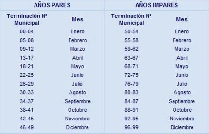 En el mes correspondiente a los dos últimos dígitos de su dirección. Por ejemplo: Si su dirección es Avda. Central 1079 depto. 701 los dos últimos dígitos del número municipal son 79, los que corresponden en el calendario adjunto al mes de Julio.
